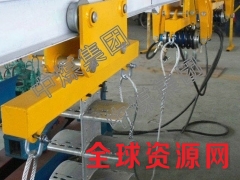 单轨吊是用于煤矿综采工作面顺槽电缆、乳化液高压胶管和水管的吊挂与移动的专用运输装置。在综采工作面运输巷道一侧的顶板下,利用锚杆和链条吊挂悬空轨道,拖运车将所有电缆和高压胶管、水管都吊挂在上面,利用工作面乳化液泵站作动力,通过油缸和连杆组成的液压步进式推拉装置,实现电缆、高压胶管和水管沿着巷道吊挂和移动。该装置避免了井下电缆凌乱摆放,减少了电缆的占用空间与电缆的移动次数,避免了人工拖动电缆,极大地减少了工人的劳动强度和作业效率。