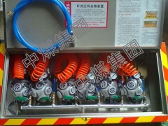 压风自救装置具有减压、流量调节、消音、泄水、防尘等功能。结构轻巧、使用方便、快捷,当煤矿井下瓦斯超标时,通过该装置向工作人员提供新鲜空气,达到安全避灾的作用。