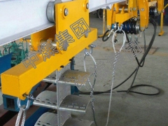 4、设有锁止装置,在步进机构制动装置失效时或者当巷道倾角较大时,起安全保护作用,确保了电缆拖挂单轨吊的安全性。