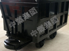 曲轨侧卸式矿车是由车轮组、车架、销轴、车厢、卸载曲轨、翻卸轮、销轴、门钩、车厢门、支撑铁拉杆等部件组成。zmjt029