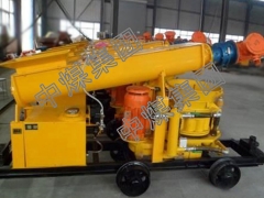 混凝土喷射机是地下工程,岩土工程,市政工程等领域内广泛使用的一种施工设备。它是利用压缩空气或其它动力,将按一定比例配合的拌和料通过管道输送并高速喷射到受喷面上凝结硬化,从而形成混凝土支护层,近年来,喷射湿凝土支护层,近年来,喷射混凝土技术以其简便的工艺,独特的效应,经济的造价和广泛的用途,在各种建筑领域内显示出旺盛的生命力。