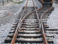 单开道岔是常见的铁路配件之一,可动辙叉单开道岔的一种,是指辙叉个别部件可以移动,以何证列车过贫时轨线的连续,消除单开道岔固定辙叉上存在的有害空间,并可取消护轨,同时单开道岔辙叉在纵断面上的几何下平顺也可以大大减少,从而显著地降低单开道岔辙叉部位的轮轨相互作用,提高运行和平稳性,延长辙叉的使用寿命。